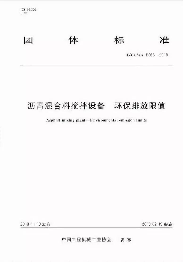 T/CCMA 0066-2018《沥青混合料搅拌设备 环保排放限值》
